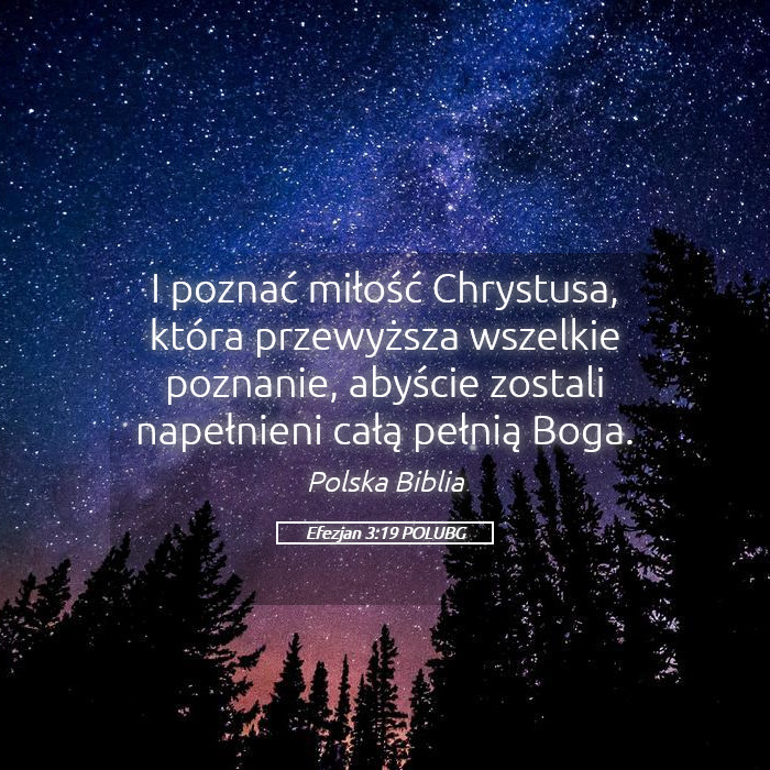 Efezjan 3:19 - „I poznać miłość Chrystusa, która przewyższa poznanie, abyście zostali napełnieni całą pełnią Boga.”