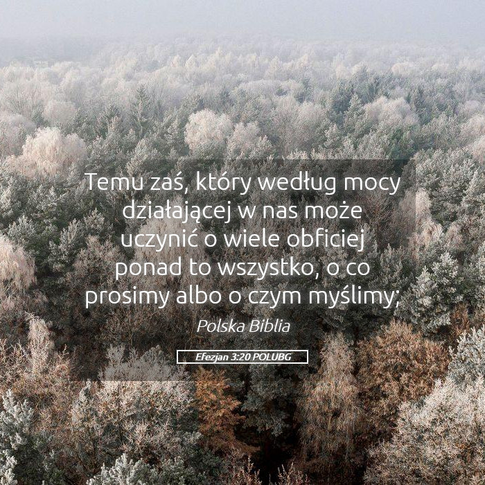 „A temu, który według mocy działającej w nas, może uczynić daleko więcej ponad to wszystko, o co prosimy albo o czym myślimy,”
