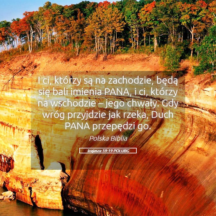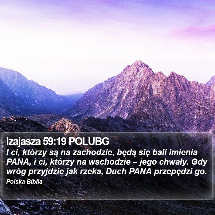 „I będą się bali imienia PANA od zachodu i jego chwały od wschodu słońca. Gdy wróg przyjdzie jak rzeka, tchnienie PANA podniesie się przeciwko niemu.”