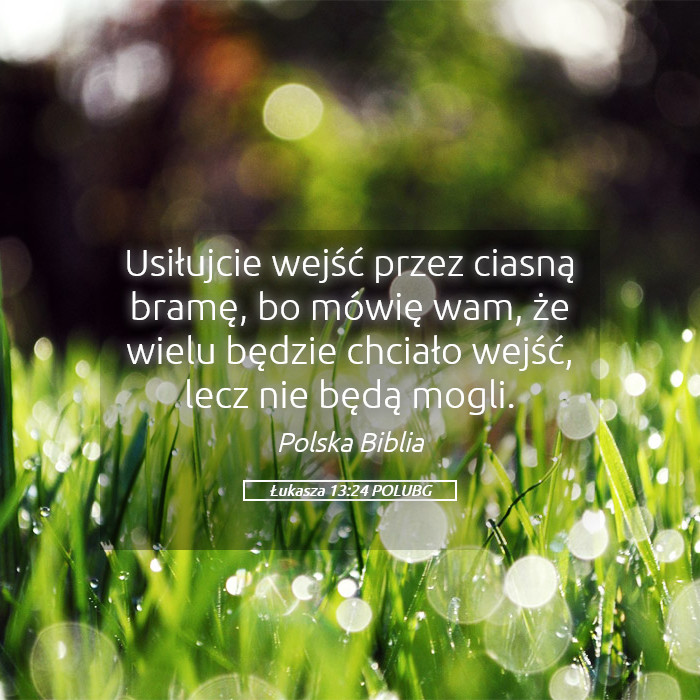 24 Starajcie się wejść przez ciasną bramę; gdyż wielu, mówię wam, będzie chciało wejść, ale nie będą mogli.