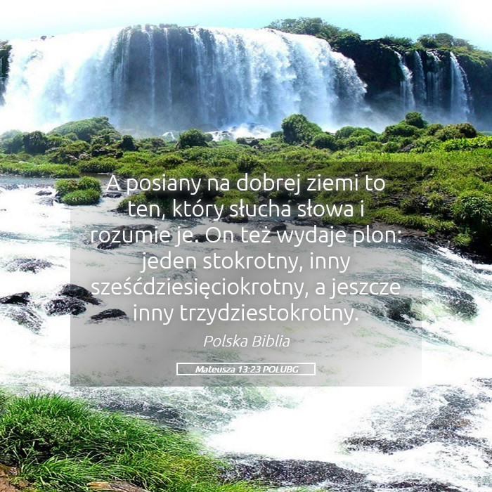 Jednak w kontraście, Mateusza 13:23 niesie wielką nadzieję. Ukazuje, że gdy Słowo pada na dobrą glebę (szczere i poddane serce), wydaje owoc: jeden stokrotny, inny sześćdziesięciokrotny, inny trzydziestokrotny.